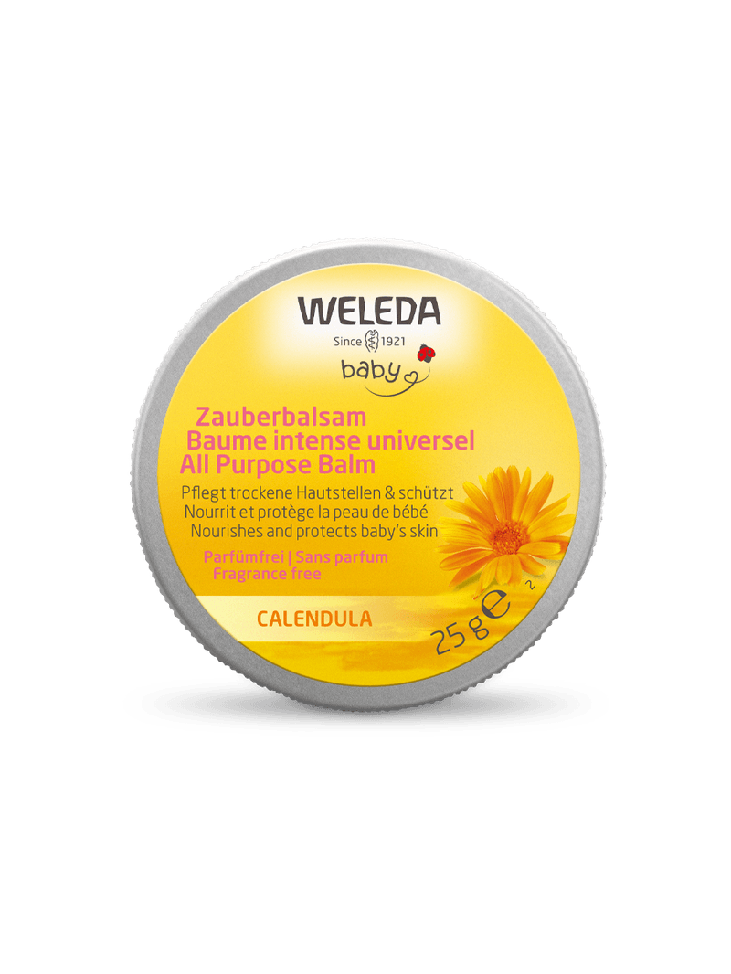 O Bálsamo Multifuncional de Calêndula protege a pele do seu bebê contra o ressecamento. Suaviza a pele do bebê, proporciona cuidado intensivo e acalma áreas secas, pele do rosto ressecada, queixo e mãos, além de lábios ressecados. Este bálsamo ajuda a restaurar a função de barreira natural da pele. A fórmula 100% natural e sem água contém ceras, óleos vegetais orgânicos, manteiga de cacau orgânica e extratos de calêndula orgânica.