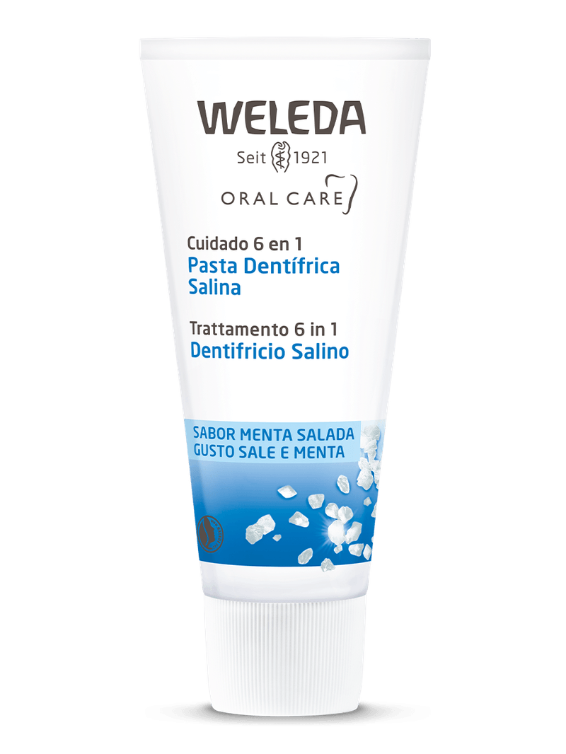 A Weleda formulou este creme dental para que as enzimas da saliva façam seu trabalho natural, limpando suavemente toda a boca. Extratos finos de raiz de ratânia, mirra e casca de castanheira ajudam a tonificar as gengivas, enquanto partículas abrasivas limpam suavemente os dentes. O sabor picante e salgado é ainda mais refrescante com óleo essencial de hortelã-pimenta, para uma limpeza dos dentes com um toque refrescante e sem flúor.