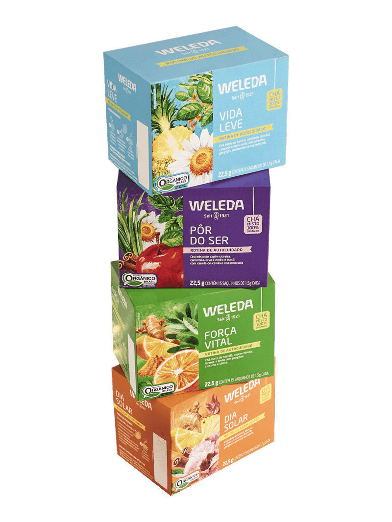 Um Kit completo, pensado para sua rotina, pronto para te acompanhar durante todo o seu dia. o Kit é composto por: 1un. Chá dia Solar Ideal para ser tomado pela manhã, para iniciar o dia com disposição e energia. 1un. Chá Força Vital Ideal para ser tomado diariamente, para manter a saúde e a imunidade sempre fortalecidas. 1un. Chá Vida Leve Ideal para ser tomado após as refeições, para se sentir mais leve. 1un. Chá Pôr do Ser Ideal para ser tomado antes de dormir, para relaxar e ter uma boa noite de sono.